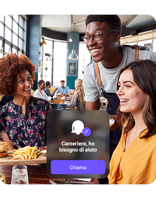 Niente più fastidiose attese. Tutto il supporto di cui i tuoi clienti hanno bisogno a portata di click. I messaggi verranno inviati al personale, che sarà così in grado di soddisfare in un attimo le richieste dei clienti.