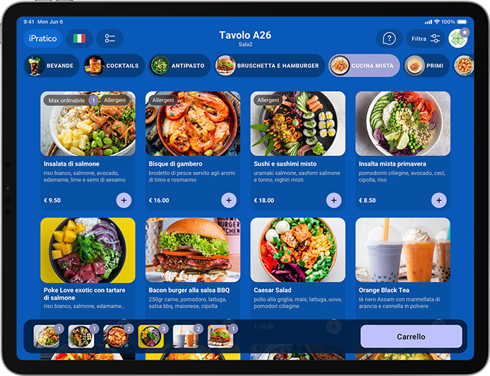 Offri un’esperienza smart: ordini e pagamenti al tavolo con un sistema intuitivo disponibile su iPad e tablet.