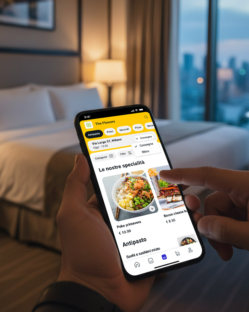 Con iPratico gestisci hotel e ristorante in un’unica piattaforma, semplificando ordini, pagamenti e flussi di lavoro. La gestione integrata aumenta l’efficienza dello staff e offre agli ospiti un’esperienza fluida, dal servizio in camera al ristorante.